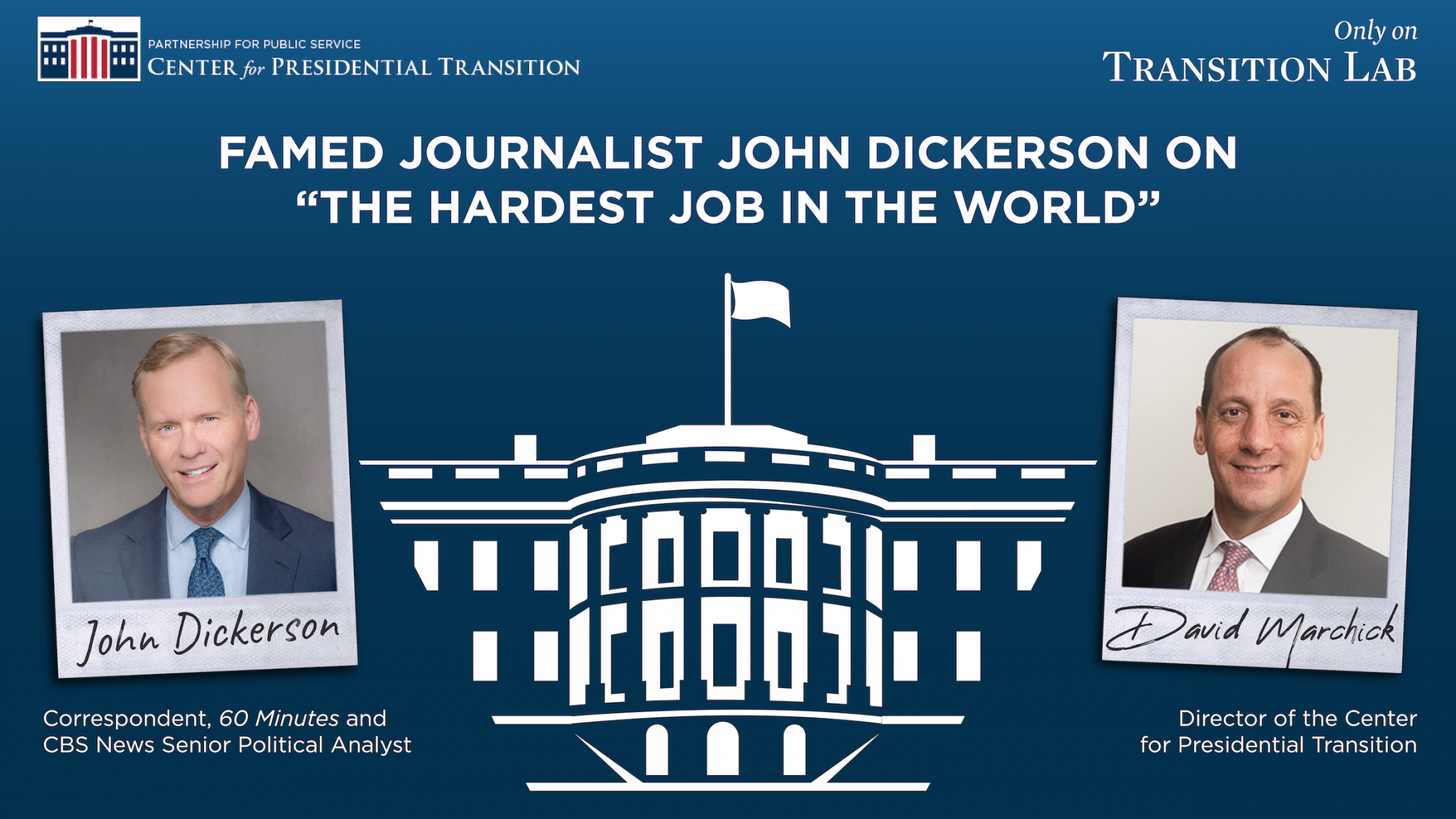 In this episode of Transition Lab, host David Marchick spoke with John Dickerson about his experience covering presidents, why presidents often struggle with their transition to the White House, how we should view the presidency and how Joe Biden and Donald Trump would govern if elected in November.